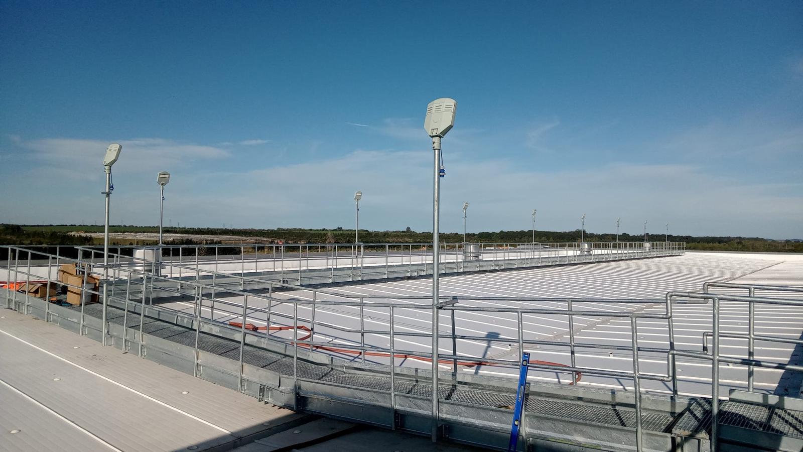 We implemented earthing/grounding with a buried copper mesh and exothermic welded connections, supported by grounding studies and resistance measurements. We also integrated Lightning Protection Systems (LPS / SPDA) and built switchboards and control panels for protection, distribution, and control, including protection selection and coordination.
