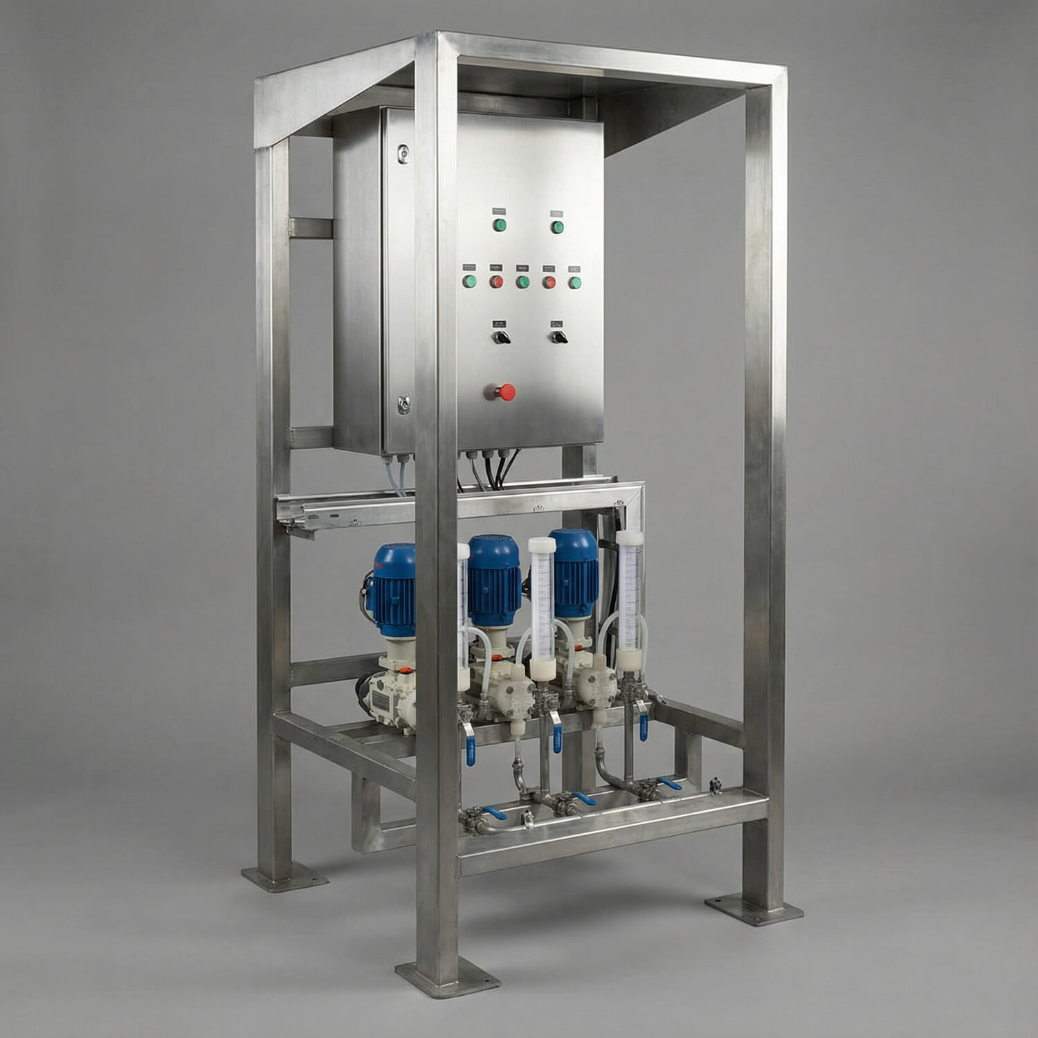 Diseñamos y fabricamos 5 skids de dosificación de productos químicos, desarrollando en cada caso una solución específica según el producto, caudal, condiciones de proceso y requerimientos de operación y mantenimiento.   Los skids incluyeron bombas dosificadoras, instrumentos y elementos de medida, tablero de comando y protecciones, variadores de velocidad, y estructura en acero inoxidable con …